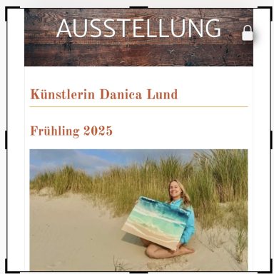 Natürlich habe ich hin und wieder auch Ausstellungen, wo ihr meine Werke live anschauen könnt. Hier halte ich Euch über die Neuesten auf dem Stand. In diesem Jahr steht noch eine in Hamburg an (s.u.), aber auch in Garding, Sankt Peter Ording und Flensburg wird es 2025/2026 einige Ausstellungen mit meinen Werken geben. Wenn genaue Termine fest stehen, findet Ihr sie immer hier auf dieser Seite.